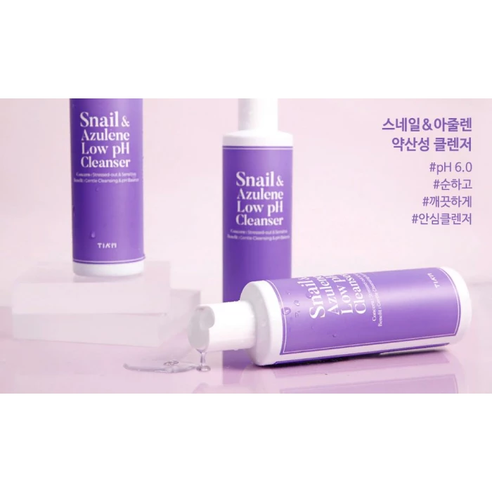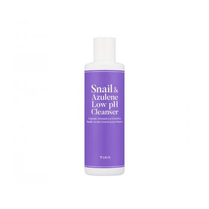 Очищающее средство Tiam Snail & Azulene Low pH Cleanser - это мягкий гель с экстрактом улитки и азуленом, которое помогает поддерживать pH здоровой кожи, а также уменьшает раздражение и успокаивает. После очищения кожа читая, не пересушенная, не стянутая. Средство эффективно удаляет остатки макияжа, загрязнения, поддерживая защитный барьер кожи благодаря низкому уровню pH = 5.5. Слабокислотный уровень pH геля не разрушает, а поддерживает защитный барьер кожи.