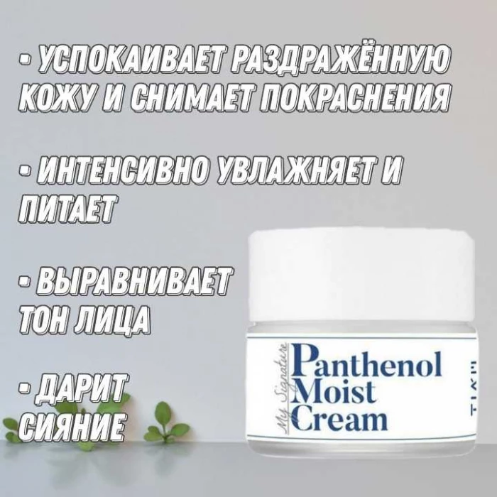 Крем TIAM My Signature Panthenol Moist Cream станет спасением для кожи, склонной к сухости. 10% пантенола, а также другие полезные компоненты в составе средства обеспечивают многоступенчатое увлажнение кожи и выполняют ряд иных функций:
